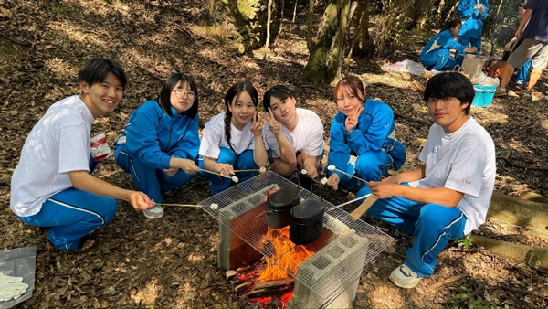 お昼は、飯盒炊爨に挑戦。かまどづくりから始めて、人力の火おこしに挑戦しました。なんと、研修旅行史上初の火おこしに成功!自分たちの火でBBQを存分に楽しみました。このBBQも事前に計画して食材の下準備することでスムーズに調理できました。