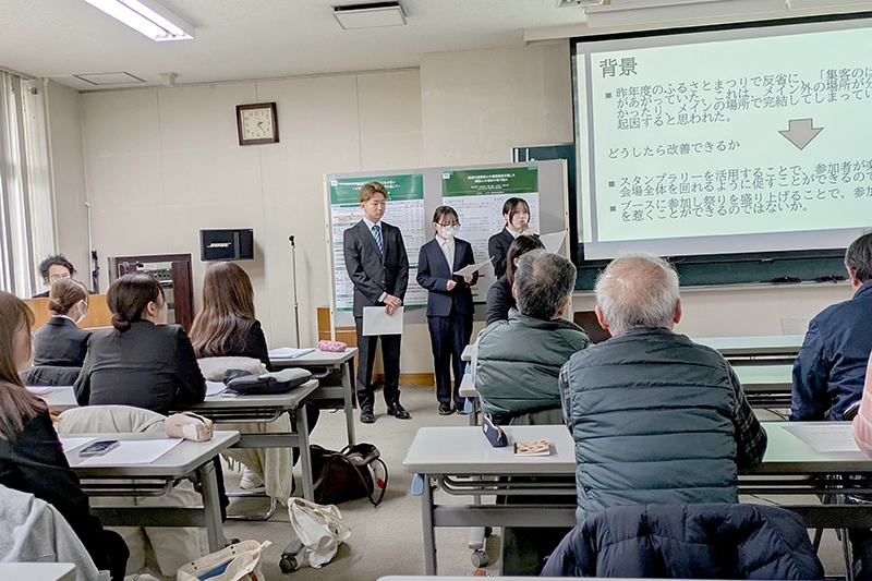 PBLでは、学生一人ひとりが地域の課題に真摯に向き合い、調査や実践を重ねながら試行錯誤を続けてきました。報告会では、そうした過程を通して培われた課題発見力、協働する力、そして自らの言葉で考えを伝える力が、発表の随所にうかがえました。