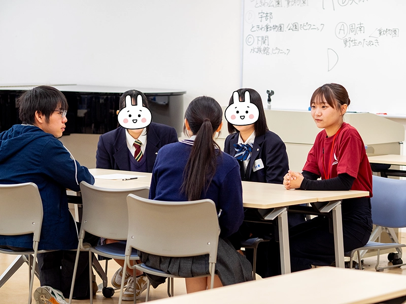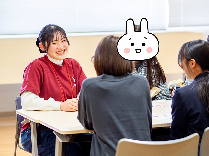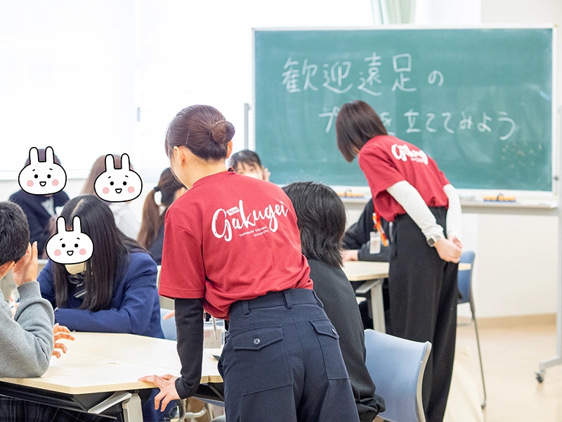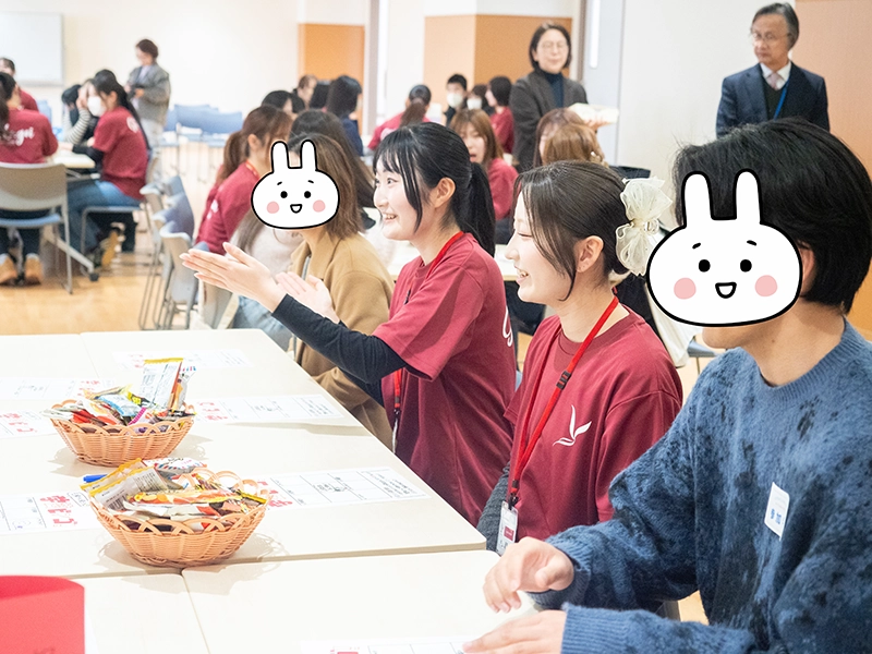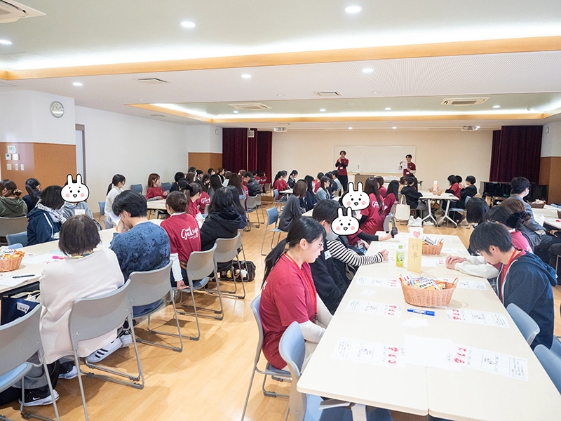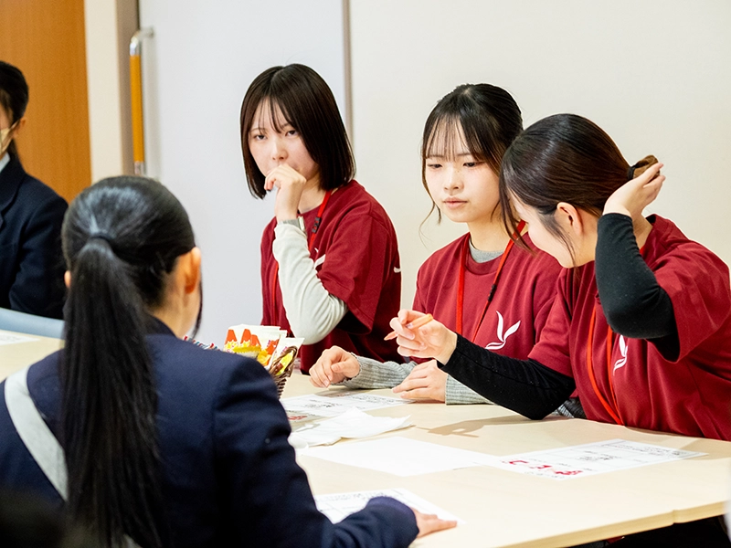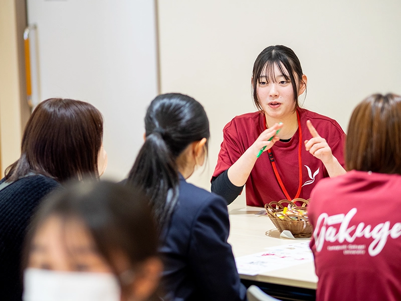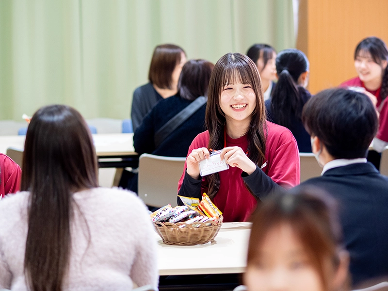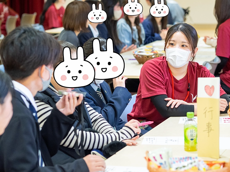 後半の「先輩たちに聞こう 学芸ビンゴ!」では、大いに盛り上がり、大学の明るく楽しい雰囲気を味わい、すでに高校生は本学に入学したかのように慣れ親しみ、先輩たちとの交流を深めて、大学生活や授業内容、アルバイトのことまで話が弾んでいたようです。