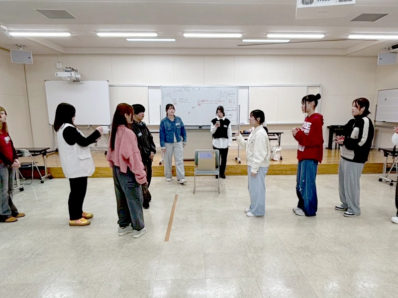 両大学の新入生約50名が参加し、学生会・自治会リーダーの誘導に従って、ミニゲーム、謎解きキャンパスツアー、じゃんけん大会等を学内の各所で行いました。